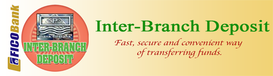 Inter-Branch Deposit is a fund transfer service extended by FICOBank to its depositors. With it, the Bank accommodates inter-branch deposit transactions at any of its banking units and provides the depositors with fast, secure and convenient way of transferring funds, if they are away from the branch where they are maintaining their respective deposit accounts.