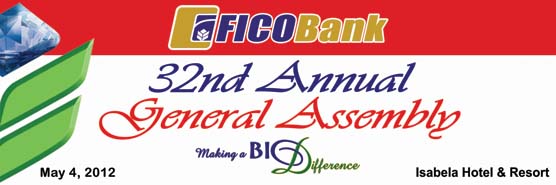 With the theme “Making a Big Difference,” FICOBank successfully held its 32nd Annual General Assembly on May 4, 2012 at the Tindalo Hall, Isabela Hotel & Resort, Minante 1, Cauayan City, Isabela. Considered first in its 32 general assemblies, a perfect attendance was registered, as the 103 coop-stockholders were all represented by their respective delegates in this annual stockholders meeting of the Bank. Hours before the actual event, delegates coming from the different member-cooperatives of the Bank, along with some guests and observers, did the official registration and joined later on the BOD, Senior Management, junior officers and employees in the opening ceremonies. After a soulful doxology rendered by the students of the Cauayan National High School and an opening prayer/homily officiated by Rev. Ferdinand Tuazon of the Bible Baptist Center, the event formally kicked off with the recognition of the official delegates and invited guests. After which, Board Chairman Almazan delivered his opening remarks, with words of encouragement and gratitude for this year’s contingent of coop representatives. After a round of splendid performance by the Rondalla Ensemble of the Cauayan National High School, Ms. Edna P. Marallag, Regional Manager of the Philippine Crop Insurance Corporation (PCIC) in Region 2, did the honor of introducing this event’s keynote speaker, Mr. Norman R. Cajucom, Acting Senior Vice President of PCIC. In his keynote speech, Mr. Cajucom extended his heartfelt gratitude to the Bank’s leadership for having him graced this year’s general assembly. He conveyed his sincere appreciation to FICOBank for its genuine aspiration and relentless efforts of alleviating the lives of the marginalized people, particularly those who are in the agriculture sector, thus, reverberating this year’s theme—“Making a Big Difference.” In closing, he cited the list of insurance products of PCIC that each farmer may avail of to cover possible crop damages due to fortuitous events. For a mutually beneficial partnership in this endeavor, a Memorandum of Agreement (MOA) was signed by the authorized representatives of both PCIC and FICOBank. The President & CEO of FICOBank, Mr. Herminio G. Ocampo, ended the preliminary activity with expressions of grateful acknowledgment of the noteworthy contributions by those who, in one way or another, made the success of FICOBank and this 32nd General Assembly possible. The business meeting was called to order at 1:00 p.m. by the presiding officer. Right after declaring the presence of a quorum by the Bank’s Corporate Secretary, Ms. Priscilla S. Gamit, the plenary session began to tackle the agenda, as adopted. The reading of the minutes of the previous general assembly meeting was dispensed with, as copy of the same has been distributed earlier on to each delegate. Next in the agenda was the business report presented by President/CEO Ocampo. The highlights of the said report were shown through PowerPoint presentation. After a few clarifications by the delegates, the report of the Bank’s President/CEO was accepted by the august body, with appreciation. The last, but not the least, agendum was the election of three members each of the Board of Directors and Election Committee. As there was no more business matter to take up after the elected officials took their solemn oath, the 32nd GA meeting of the Bank was adjourned at around 4:00 p.m. |